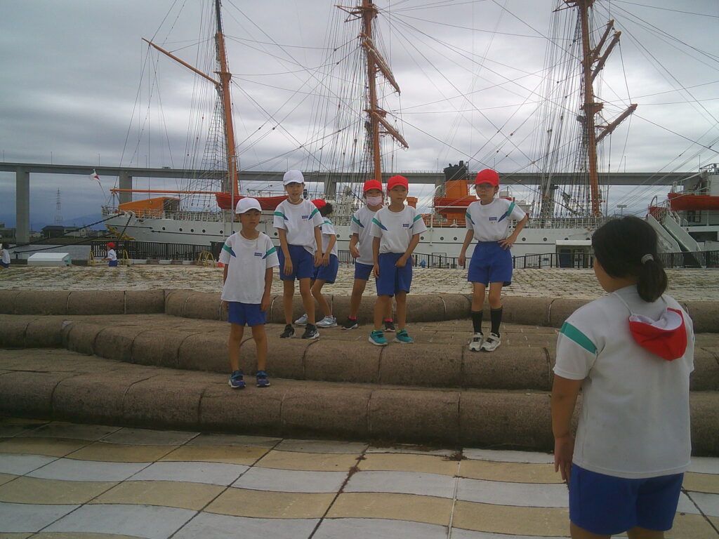 海王丸パークではお弁当を食べました。とてもおいしそうなお弁当を色団の友達と楽しく食べました。雨も上がり、短い時間でしたが外でも遊ぶことができました。